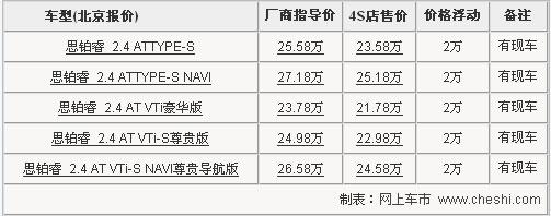 東風(fēng)本田旗下的首款運(yùn)動(dòng)中高級(jí)車型——思鉑睿于09年9月初上市,全系共計(jì)五款車型,售價(jià)為23.78萬(wàn)元—27.18萬(wàn)元。上根據(jù)網(wǎng)上車市價(jià)格監(jiān)測(cè)系統(tǒng)顯示,目前購(gòu)買思鉑睿全系可優(yōu)惠現(xiàn)金2萬(wàn)元,現(xiàn)車方面較為齊全。具體車型行情如下: