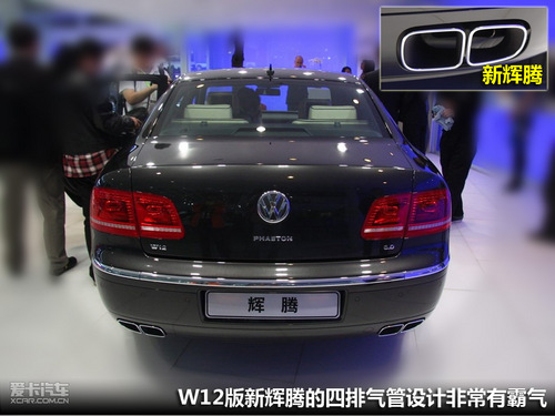 W12版新輝騰在車頭部與尾部都配備了探測雷達,配合自動車距調節(jié)系統(tǒng)(ACC)可以讓車輛與前車自動保持適當?shù)木嚯x。新輝騰的排氣管與后杠融為一體,W12版車型的四排氣管設計顯得比低調的老款車型霸氣許多。尾燈也做了適當?shù)男薷模臑榱舜蟊娊y(tǒng)一風格的LED燈組。