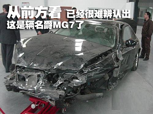 當(dāng)我們看見(jiàn)這輛被拖回來(lái)的名爵MG7時(shí),因?yàn)檐囕v受損比較嚴(yán)重,如果不看車尾從車頭方向看上去,已經(jīng)很難辨認(rèn)出這到底是一輛什么車了。