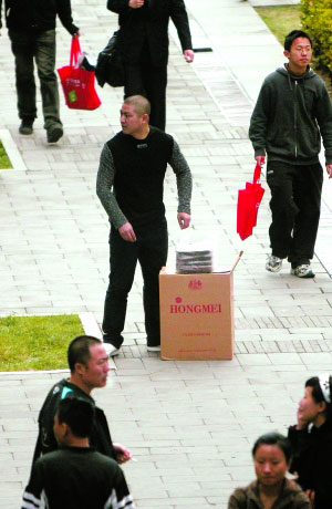 記者26日下午在這里看到,一個(gè)男人坐在通道里,手拿計(jì)算器,1個(gè)多小時(shí)內(nèi)陸續(xù)有近30人出入,大家把錢交到男子手中,隨后分批離開(kāi)。一個(gè)操著東北口音的男子說(shuō):“我是來(lái)幫忙賣盒飯的,中間拿提成!
