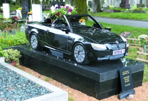 英國(guó)車迷史蒂夫·馬什去年去世。為表現(xiàn)他生前對(duì)汽車的熱愛(ài),馬什的家人為他訂做一個(gè)“寶馬”車造型的墓碑。