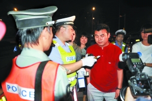 據(jù)東城交警介紹,除了拘留之外,馬力爭已依法被記12分,還要接受1800元罰款,暫扣駕駛證6個(gè)月。在查獲馬力爭之前的10分鐘,河北女司機(jī)熊某在同一地點(diǎn)被攔下,她每百毫升血液中酒精含量為23毫克,屬于酒后駕駛,被處記12分,罰款500元,暫扣駕駛證3個(gè)月的處罰。(許建明 攝)