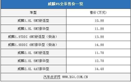 9月8日奇瑞旗下四大品牌之一威麟正式宣布投入運(yùn)營,旗下的第一款車型威麟V5 1.9L柴油版本也將于當(dāng)天正式登場。威麟V5全系共有7款車型,售價(jià)10.98-14.98萬元,具體售價(jià)如下表:
