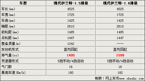 從上表我們看出,北京現(xiàn)代即將推出的1.5排量的伊蘭特在車身尺寸上和1.6排量的車型完全一樣。只是發(fā)動機換成了1.5升的G4EC汽油發(fā)動機。變速器與1.6車型一樣,都是5擋手動變速器和4擋自動變速器。由于排量的降低,1.5排量的伊蘭特最高是時速值達到了180 Km/h,1.6排量的車型可以跑到182Km/h。與此同時根據(jù)網(wǎng)上車市價格檢測系統(tǒng)顯示,目前伊蘭特的優(yōu)惠幅度又有所增加,最高優(yōu)惠幅度已經(jīng)達到了1萬。具體車型售價見下表。