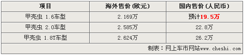 一、甲殼蟲1.6入華 售19.5萬