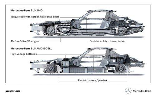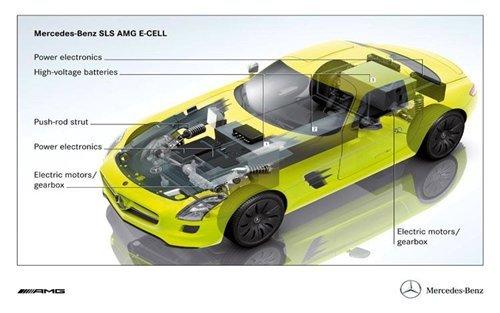 SLS E-Cell將有四臺電動機(jī)驅(qū)動(前后軸上各有兩臺),因此,新車將會是一款全輪驅(qū)動車型。每臺電動機(jī)的最高轉(zhuǎn)速都可達(dá)到12000rpm,合計輸出到車輪的動力為526馬力和870N·m。SLS E-Cell的百公里加速預(yù)計可在4秒內(nèi)完成。