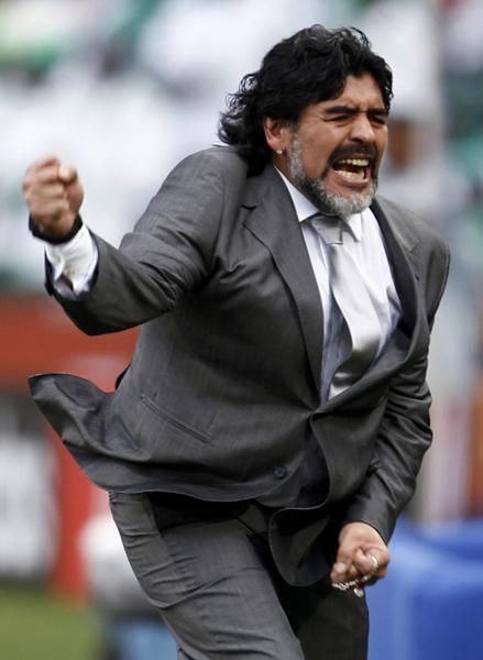 馬拉多納回來了,以一個新身份——球王主教練,帶領(lǐng)梅西等一班天才,想要體驗真正黃袍加身的快感。北京時間6月12日晚,阿根廷小勝非洲雄鷹,馬拉多納用快感在鉆石王國肆虐了一把,熊抱木訥梅西,親了又親。