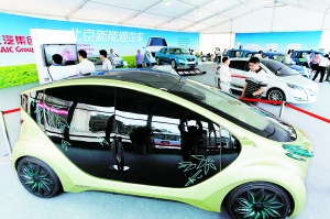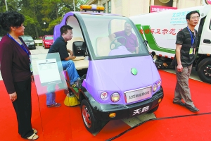 一踏上北京展覽館門前的小廣場(chǎng),參觀者便立刻被露天擺放在廣場(chǎng)上的各種新能源汽車吸引住了?雌饋硭坪鹾推胀ɡ嚊]什么兩樣的桶裝垃圾運(yùn)輸車與壓縮式垃圾車,實(shí)際上卻是靠電池來運(yùn)行的;北汽的新能源汽車最高時(shí)速已經(jīng)可以達(dá)到每小時(shí)160公里;小型電動(dòng)汽車“竹風(fēng)”只需要30分鐘即可快速充電80%……