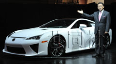 豐田社長豐田章男21日在東京車展上介紹新發(fā)布的高性能跑車“LFA”。