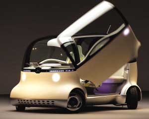 “PIXY”是僅供1人乘坐的低速移動(dòng)工具。其主要特點(diǎn)是:相當(dāng)于人行走的移動(dòng)速度,絲毫不會(huì)帶給人壓迫感的卵形車身、柔軟的外裝材料。由于裝載了可快速充電的電容器的發(fā)動(dòng)機(jī)驅(qū)動(dòng),因此不會(huì)有廢氣產(chǎn)生。“SSC”是可以前后放入兩個(gè)“PIXY”的輕型汽車合體,動(dòng)力采用的是燃料電池系統(tǒng)。