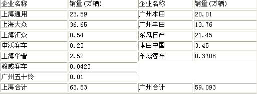 持此說法者以今年10月廣州、上海當(dāng)?shù)厣a(chǎn)的乘用車銷量為依據(jù)。10月份,廣州三大乘用車企業(yè)——廣州本田、東風(fēng)日產(chǎn)、廣州豐田的銷量約5.7萬輛,如果扣除在湖北襄樊生產(chǎn)的東風(fēng)日產(chǎn)天籟,則廣州乘用車銷量約5.5萬輛。至于上海,盡管上海通用和上海大眾銷量合計6.5萬輛,但扣除上海通用沈陽、煙臺生產(chǎn)的1.3萬余輛,即使再計算上海華普的銷量,上海本地生產(chǎn)的汽車銷量不足5.3萬輛。