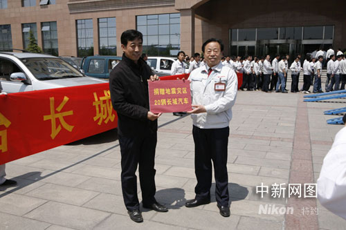 中新網(wǎng)5月13日電 四川汶川發(fā)生的地震災(zāi)情牽動(dòng)著億萬(wàn)同胞的心。消息傳至保定后,長(zhǎng)城汽車(chē)高層領(lǐng)導(dǎo)于昨晚連夜召開(kāi)緊急會(huì)議,作出兩項(xiàng)重大決定:一是通過(guò)紅十字會(huì)向?yàn)?zāi)區(qū)捐贈(zèng)20輛SUV、皮卡,作為救援工作車(chē);二是原計(jì)劃在13日晚舉行的“轎車(chē)發(fā)動(dòng)機(jī)工廠落成、全鋁VVT發(fā)動(dòng)機(jī)下線”活動(dòng)一切從簡(jiǎn),臨時(shí)增加員工向?yàn)?zāi)區(qū)捐贈(zèng)儀式。