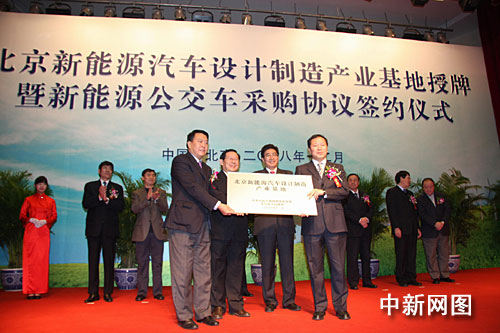 中新網(wǎng)1月9日電 日前,北京新能源汽車(chē)設(shè)計(jì)制造產(chǎn)業(yè)基地授牌暨新能源公交車(chē)采購(gòu)協(xié)議簽約儀式在福田汽車(chē)舉行,國(guó)家科技部和北京市政府聯(lián)合向福田汽車(chē)授予了北京新能源汽車(chē)設(shè)計(jì)制造產(chǎn)業(yè)基地牌匾。
