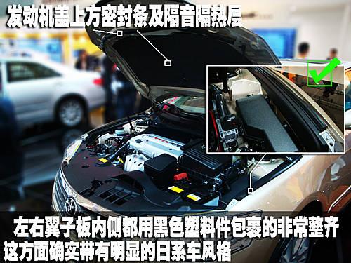 廣豐凱美瑞可以說是日系B級(jí)轎車中的代表作,其發(fā)動(dòng)機(jī)艙內(nèi)布局不僅工整而且在前格柵上方以及兩側(cè)翼子板這些空隙的地方都用塑料件覆蓋,提升了發(fā)動(dòng)機(jī)艙的整齊程度看上去非常嚴(yán)謹(jǐn)和美觀。