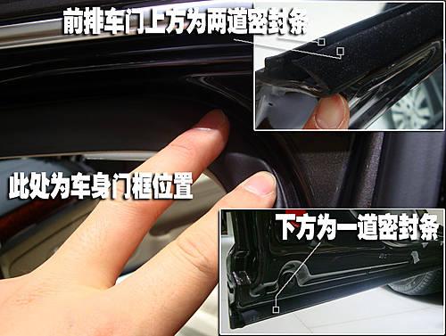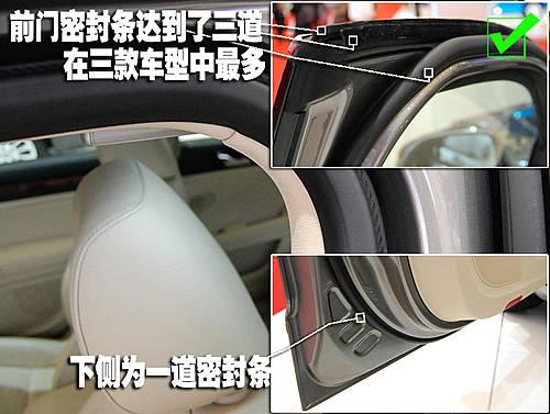 凱美瑞在車門上方提供了兩道密封、車門下方也有兩道密封,同樣的在車身門框的位置也提供了一圈密封條,車門上下兩側(cè)均有兩道密封條提供車身密封這在三款車型中是獨有的設(shè)計。