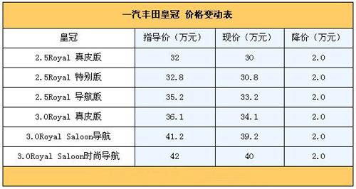為了使皇冠車型在市場(chǎng)上更具競(jìng)爭(zhēng)力,一汽豐田推出了豪華轎車皇冠的改款車型,新設(shè)了3.0LRoyalSaloon時(shí)尚導(dǎo)航版車型和3.0LRoyalSaloon標(biāo)準(zhǔn)版車型,全部車型都達(dá)到了歐IV排放標(biāo)準(zhǔn),同時(shí)全級(jí)別標(biāo)準(zhǔn)配備了側(cè)簾式SRS空氣囊。對(duì)3.0LRoyal真皮版、2.5L特別版和2.5LRoyal真皮版也進(jìn)行了配置升級(jí):標(biāo)準(zhǔn)配備了高級(jí)腳墊和尾氣排放監(jiān)測(cè)裝置等。