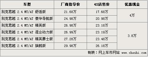 別克君越一直是中高級車市最受關(guān)注的車型之一,這款車搭載了全球普及率較高的ECOD-VVT2.4L全鋁智能發(fā)動機(jī),并配以6速手自一體變速箱,在動力上比老款有非常大的提升。根據(jù)網(wǎng)上車市價格監(jiān)測系統(tǒng)顯示,目前君越優(yōu)惠已過4萬元,具體車型和價格如下: