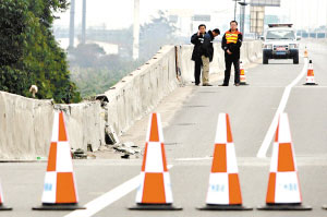 廣深高速的路政人員已經(jīng)趕到現(xiàn)場(chǎng),在出事的橋面兩端放置了隔離欄,并拉起了警戒線。