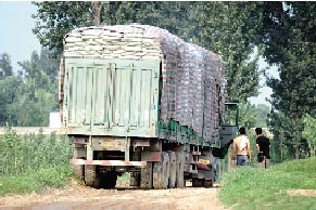 記者從固安大橋出發(fā),驅(qū)車(chē)向西行駛七八公里,沿途穿過(guò)固安縣東駝村,便是永定河的堤道。一名村民抱怨說(shuō),自從封路檢查后,這條路就經(jīng)常過(guò)往大車(chē),原本平整的路面也被毀得坑坑洼洼。