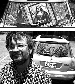 說到臟車藝術(shù),大家是不是有點糊涂?這得從美國人斯科特·韋德說起,家住得克薩斯州的他每隔一段時間就開著自己的車前往鄉(xiāng)下,在顛簸的土路上來回行駛。他不是在測試車的減震系統(tǒng),也不是在享受駕駛樂趣,而是為了把車弄得“風塵仆仆”,給他的臟車藝術(shù)創(chuàng)作獲取材料,F(xiàn)年48歲的韋德畢業(yè)于得州大學(xué)藝術(shù)系,4年來,這位特立獨行的藝術(shù)家從不洗車,而是任憑車的后擋風玻璃被灰塵覆蓋,然后將玻璃當作畫布,將灰塵當作顏料,展開藝術(shù)創(chuàng)作。