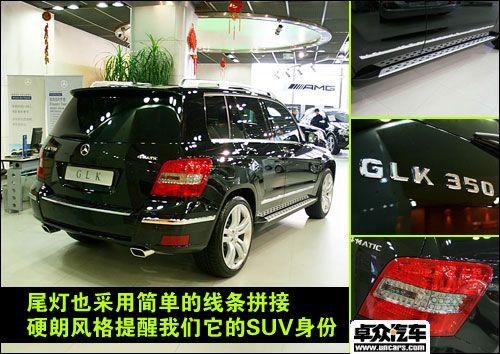 GLK大燈同樣采用簡單的直線條設(shè)計,只是邊角處加入了凌厲張揚的元素,看上去很像鷹眼,非?。這就是它“硬派”一面。而之所以說它“公路”,則是在它的總體定位——奔馳GLK是針對寶馬X3推出的緊湊型SUV車型,底盤懸掛系統(tǒng)以及動力配備都與X3類似。GLK350前后輪胎采用不同的尺寸,前輪采用較窄的235/45R20,后輪的則是稍寬的255/40R20,這樣的設(shè)計也是為了提升公路性能。