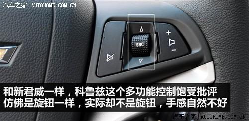 方向盤第二個不足來自于多功能按鈕:科魯茲的這個多功能按鈕設計和使用和新君威一模一樣,這個旋鈕模樣的按鈕其實是不能旋轉的,上下推拉的感覺很差,因為人都會把圓形物體默認為旋轉形式,于是感官就會很不舒服。