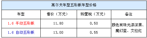 目前店內(nèi)有的五彩版高爾夫有深黑、魔幻藍(lán)、艾拉紅三種顏色的現(xiàn)車,而且手動(dòng)自動(dòng)車型均有車銷售。而現(xiàn)在高爾夫五彩版高爾夫的售價(jià)則是手動(dòng)車型11.7萬、自動(dòng)版13萬元。目前購車還能得到店方贈(zèng)送的全額購置稅。據(jù)了解目前店內(nèi)對(duì)五彩版高爾夫車型還有大幅度的優(yōu)惠,車價(jià)直降1萬元,而加上店方贈(zèng)送的購置稅使得高爾夫的性價(jià)比更高。
