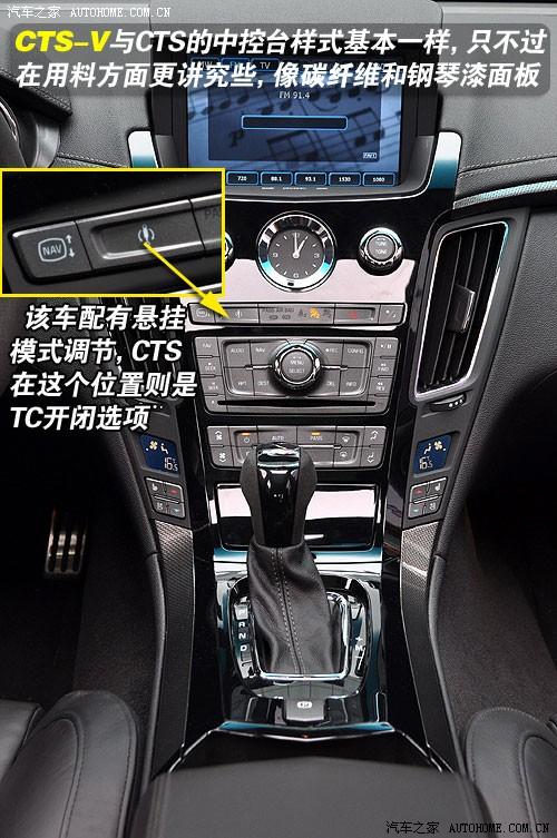 在CTS-V車內(nèi),我看到了不少運(yùn)動(dòng)型或性能車上所具有或沒有的特點(diǎn),說起來有些繞口,首先談?wù)劰残。一般情況下,運(yùn)動(dòng)型車內(nèi)都會(huì)用深色為基調(diào)的內(nèi)飾并搭配碳纖維面板,有些車上還會(huì)用白色縫合線與深色高等皮質(zhì)搭配,這樣一來,不僅樣式好看,它所透出的動(dòng)感也是無法掩蓋的。