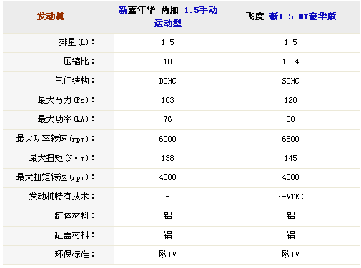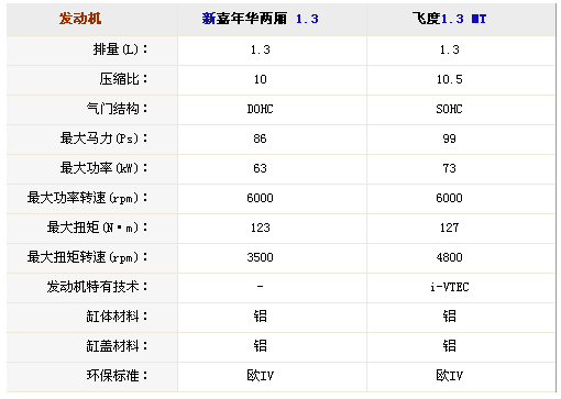 前面已經(jīng)說過,新嘉年華和飛度都是1.3和1.5兩個排量,如果只看發(fā)動機(jī)參數(shù)的話,那飛度顯然要強(qiáng)出太多了。先來看1.3排量,飛度多出13馬力和4N·m。1.5升發(fā)動機(jī)則差得更多,飛度比新嘉年華高出17馬力和7N·m。盡管參數(shù)上不具備優(yōu)勢,但是新嘉年華針對城市游弋的特征要更加明顯,最大扭矩到來的比飛度要早很多,尤其是1.3升車型,兩者最大扭矩輸出轉(zhuǎn)速相差了1300轉(zhuǎn)之多。