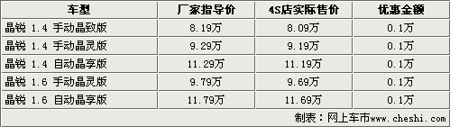 目前北京地區(qū)斯柯達(dá)店的晶銳車源比較充足,購買晶銳車型的消費(fèi)者在可以得到1000元現(xiàn)金優(yōu)惠的同時,還可以得到商家贈送的汽車裝飾。銷售人員還表示,1.4部分車型需要提前預(yù)訂,預(yù)訂周期大約在最短2周到最長8周不等。