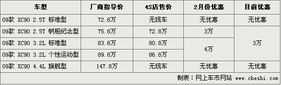 據(jù)沃爾沃4S店銷售人員介紹,目前銷售的沃爾沃XC90均是09款新車,其中2.5T帆船紀(jì)念版車型和3.2兩個排量車型可優(yōu)惠現(xiàn)金3萬元,其他2.5T標(biāo)準(zhǔn)版和4.4旗艦版沒有優(yōu)惠。現(xiàn)車方面,4S店有藍(lán)色款現(xiàn)車供應(yīng),個別款顏色需要消費(fèi)者先行預(yù)定。
