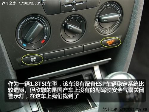 作為1.8TSI手動(dòng)擋車型,我們?cè)谥锌嘏_(tái)上并沒有發(fā)現(xiàn)ESP車輛電子穩(wěn)定系統(tǒng)的按鍵,不過我們找到了副駕駛安全氣囊關(guān)閉指示燈。經(jīng)真實(shí),該車的確沒有配備ESP,比較遺憾。而國(guó)產(chǎn)明銳 1.8T 手動(dòng)奪金版上則配有ESP,可見國(guó)產(chǎn)車的配置也還算厚道。