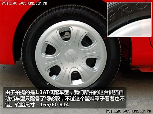 我們所拍攝的熊貓1.3L AT低配車型配備的是大小為14英寸的佳通輪胎,鋁合金輪轂也理所當(dāng)然的沒有配備,不過低配熊貓的這款塑料外殼做的還算精致,配在165/60 R14的熊貓車胎上并不顯得突兀。