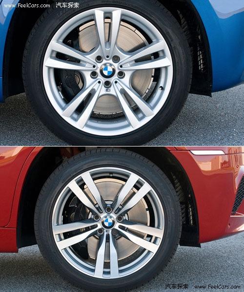 其他方面,前輪275/40R20、后輪315/35R20的高性能運(yùn)動(dòng)輪胎進(jìn)一步加強(qiáng)了魁梧車(chē)身的運(yùn)動(dòng)氣息,細(xì)心觀察還可發(fā)現(xiàn)X5M同X6M的20寸超輕輪轂的造型雖然相似但還是有些許不同。為了保證足夠的制動(dòng)力和良好的視覺(jué)效果,四輪均采用了四活塞卡鉗的制動(dòng)系統(tǒng)。