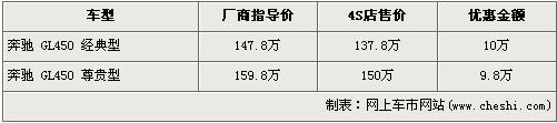 據(jù)經(jīng)銷商處銷售人員介紹,目前國(guó)內(nèi)在售的奔馳GL級(jí)分為GL450 經(jīng)典版與GL450 尊貴版,上個(gè)月兩款車型的優(yōu)惠金額分別為3萬(wàn)元和4.8萬(wàn)元,近日奔馳GL系的優(yōu)惠金額暴增,優(yōu)惠近額分別漲到了10萬(wàn)元和9.8萬(wàn)元。經(jīng)優(yōu)惠后,低配車型的經(jīng)典版售價(jià)將為了137.8萬(wàn)元,首次跌破140萬(wàn),高配的尊貴版車型售價(jià)也降為了150萬(wàn)元。