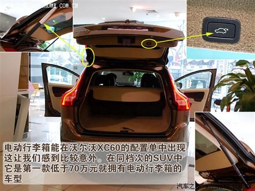 而電動行李箱則是它比較值得炫耀的配置,因為在寶馬X3、奔馳GLK這個檔次的SUV中,沃爾沃XC60是第一款擁有電動行李箱的車型。也因為有了電動行李箱,它后尾門左側(cè)的支桿負擔(dān)了舉升的任務(wù),所以明顯比右邊的普通液壓桿來的更粗。
