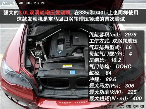 X6一種有兩款車,分別是xDrive35i和xDrive50i,此次我們體驗(yàn)的是前者,它搭載的是和已經(jīng)引進(jìn)的335i一樣的發(fā)動(dòng)機(jī):3.0排量雙渦輪增壓。這款發(fā)動(dòng)機(jī)可以說(shuō)是寶馬回歸渦輪增壓領(lǐng)域的首次嘗試,效果怎么樣?335i已經(jīng)被證明相當(dāng)猛。