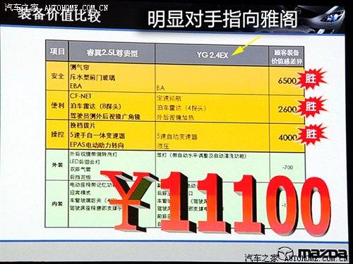 此次上市發(fā)布會(huì)上面一汽馬自達(dá)將自己的配置和同級(jí)別車型進(jìn)行了對(duì)比,公開(kāi)發(fā)布了同級(jí)別售價(jià)的車型相比睿翼在配置方面的性價(jià)比會(huì)高出1.11萬(wàn)元的口號(hào),并且現(xiàn)場(chǎng)用PPT進(jìn)行了展示。