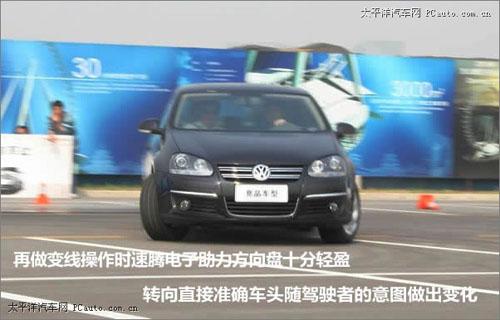 首先我們將速騰加速到80公里/小時(shí),油門到底,車猛的竄了出去,再做變線操作時(shí),電子助力方向盤十分輕盈,轉(zhuǎn)向直接準(zhǔn)確,車頭隨駕駛者的意圖做出變化,只是在做出太大動(dòng)作時(shí),速騰的轉(zhuǎn)向不足的情況比較嚴(yán)重。在整個(gè)過(guò)程中速騰底盤表現(xiàn)出深厚的功底,“駕駛者之車”的美譽(yù)名副其實(shí)。