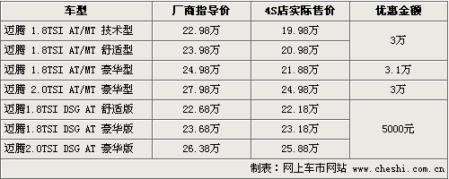 據(jù)一汽大眾北京地區(qū)4S店銷(xiāo)售人員介紹,目前老款的邁騰車(chē)型數(shù)量已經(jīng)不多了,只有少量1.8T和2.0車(chē)型。新款DSG版本車(chē)型目前在售的有三款,包括了1.8TSI自動(dòng)檔舒適版和豪華版,以及2.0TSI 自動(dòng)豪華版。新款售價(jià)相比老款有一定幅度的降低,但性?xún)r(jià)比更高。目前購(gòu)買(mǎi)新款車(chē)型的消費(fèi)者,也可以有5000元的現(xiàn)金優(yōu)惠。