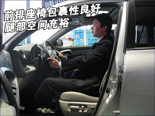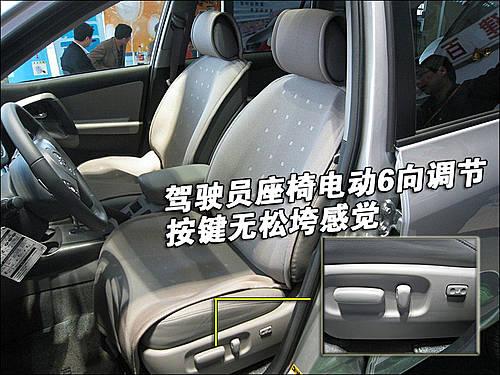 豐田國產RAV4整車座椅均采用真皮材料,駕駛席座椅前后、靠背角度、座椅高度為電動調節(jié)。各按鈕四周做工較細致,無任何松垮感覺。