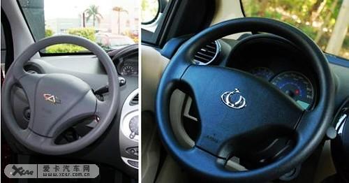 瑞麒M1和熊貓都采用三幅式方向盤設(shè)計(jì),瑞麒M1的方向盤中間的LOGO依然使用奇瑞老式車標(biāo),方向盤高低可以調(diào)節(jié),適合不同身材的駕駛員使用。吉利熊貓則采用了全新的車標(biāo),再設(shè)計(jì)上達(dá)到了統(tǒng)一,這一點(diǎn)奇瑞可能在后續(xù)車型上會(huì)采用全新的車標(biāo)。