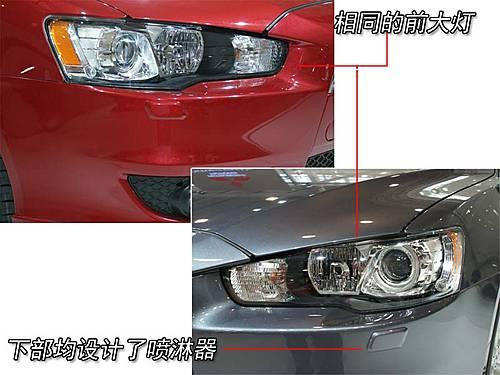 前臉其它部分的設(shè)計(jì)則基本相同,不僅是大燈的燈罩及燈組設(shè)計(jì),連前杠兩側(cè)的大燈噴淋裝飾都一模一樣。