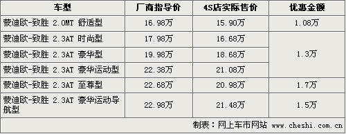 據(jù)4S店銷(xiāo)售人員介紹,目前,蒙迪歐致勝2.0排量車(chē)型廠家排產(chǎn)較少,只有個(gè)別4S店內(nèi)有現(xiàn)車(chē)供應(yīng),現(xiàn)在購(gòu)車(chē)的話可以優(yōu)惠現(xiàn)金1.08萬(wàn)元,2.3排量車(chē)型優(yōu)惠幅度從1.3萬(wàn)元到1.7萬(wàn)元不等。目前4S店有黑色、灰色、藍(lán)色以及銀色等現(xiàn)車(chē)可供消費(fèi)者選擇,選擇的空間比較大。