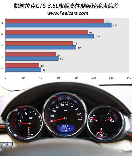 速度表的偏差繼承了凱迪拉克車型的一貫傳統(tǒng):偏差很大。100km/h的實(shí)際速度只有93km/h,而120km/h的實(shí)際速度只有111km/h,這在我們測試過的車型中是比較少見的。