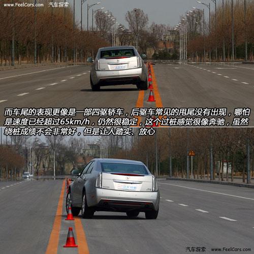 最后是最精彩的18米繞樁測試,說實話,新CTS的繞樁表現(xiàn)大大出乎我們的意料,因為我們對老款CTS的不安分表現(xiàn)現(xiàn)在還印象深刻。