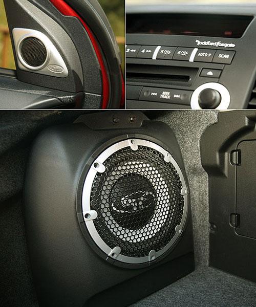 相較于在日本試駕那臺(tái)中控臺(tái)僅有置物盒設(shè)計(jì),可說(shuō)是陽(yáng)春到底的EVO X,國(guó)內(nèi)這臺(tái)EVO X的中控臺(tái)配備可說(shuō)是豪華演出,除了有國(guó)人熟悉的Lancer車系音響模塊外,中華汽車也將Rockford Fosgate音響系統(tǒng)列入座艙配備清單內(nèi),成為少數(shù)值得拿出來(lái)特別介紹的座艙娛樂(lè)配備,這組音響系統(tǒng)含四門揚(yáng)聲器、兩顆高音揚(yáng)聲器與行李箱重低音揚(yáng)聲器在內(nèi),總共有多達(dá)9聲道(雙前門為雙揚(yáng)聲器設(shè)計(jì))。