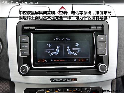 中控面板上有可以彈出的撥號鍵,右側(cè)則有一個儲物用的小抽屜,如果你見過進口邁騰就會覺得這些都很眼熟。一個中央液晶屏基本囊括了整個音響、導航、電話和空調(diào)系統(tǒng)的功能,不過這款低配車型上沒有導航,按鍵布局跟國產(chǎn)邁騰一模一樣。