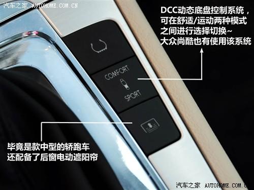 大眾CC搭配大眾的DSG變速箱,應(yīng)該也是跟邁騰一樣的DQ250。排擋樣式跟其他大眾車型都一樣,在擋把上有DSG的字樣。跟尚酷一樣配備了大眾的新技術(shù)DCC動態(tài)底盤控制系統(tǒng),可以在舒適和運動兩種模式中選擇切換。但遺憾的是踏板都是非常普通的樣式,未免太過于低調(diào)了。畢竟也是一款轎跑車,適當在細節(jié)上增強些視覺效果會更受歡迎。不過,那好像也不是大眾的風格。