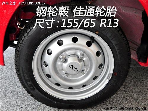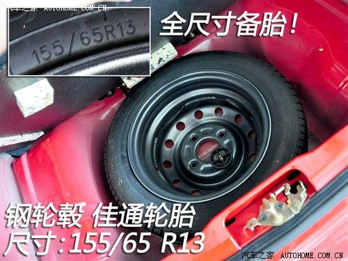 QQ3全系配備的輪胎尺寸為155/65 R13,品牌為佳通。這樣的尺寸在0.8車型上還算中規(guī)中矩,而1.1車型還配備這樣尺寸的輪胎在同級(jí)別中就顯得有點(diǎn)寒酸了。QQ3也有鋁合金輪轂可供選擇,我們實(shí)拍的這樣裝備的是鋼輪轂,備胎都屬于全尺寸的。